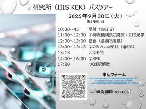 | 開催場所 | ①筑波大学国際統合睡眠医科学研究機構(IIIS) ②高エネルギー加速器研究機構(KEK) ①のみ②のみの参加も可能です。②のみの場合もIIISにお集まりください。 |
