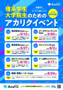 アカリクでは、大学院生、理系学生に特化した少人数制オンライン就活イベントを毎月開催しています。