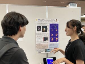 私は、「銀河衝突シミュレーションで切り拓く次世代のGalactic Habitable Zone研究」というテーマで、ポスターセッションを行いました。天文学・宇宙物理学や計算機に関する研究を行っている博士課程学生だけでなく、スーパーコンピュータでの数値計算の専門家、天体観測の愛好家、そして分野外の方々が多くセッションに訪れてくださいました。普段の学会や研究会での発表とは異なり、研究の概要を専門外の方にも分かりやすく端的に伝えるのは工夫が必要でしたが、自分の研究計画やその社会的意義について改めて整理し、理解し直す良い機会にもなりました。また、様々な専門分野の方が集っている場ならではのコメントをいただいたり、聴衆の方の研究についてもお話しを聞けたりと、普段とはまた違った会話もできて楽しかったです。このような機会を通して自分の研究の魅力を客観的に認識し、活力になっただけでなく、年代や分野を超えて人脈も広げることができました。